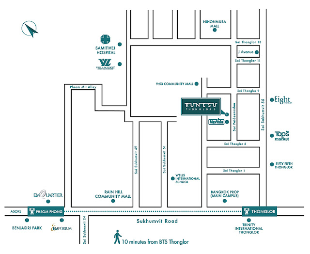 - BTS Sukhumvit Line, Thong Lo Station, 700 m.